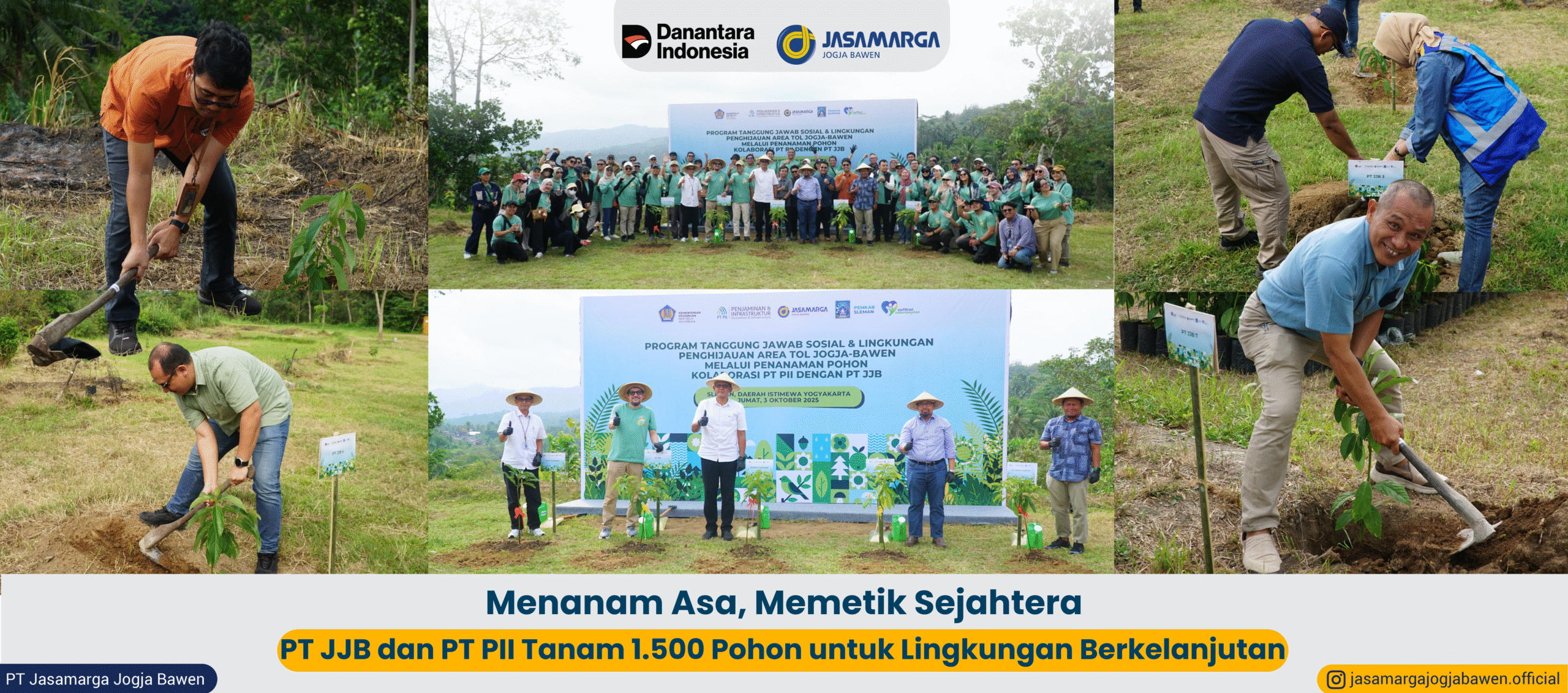 Sebagai wujud komitmen terhadap pembangunan berkelanjutan, PT Jasamarga Jogja Bawen (PT JJB) bersama PT Penjaminan Infrastruktur Indonesia (PT PII) melaksanakan kegiatan penanaman 1.500 bibit pohon di Dusun Plataran, Kalurahan Banyurejo, Kapanewon Tempel, Sleman, Pada Jumat (3/10/2025).